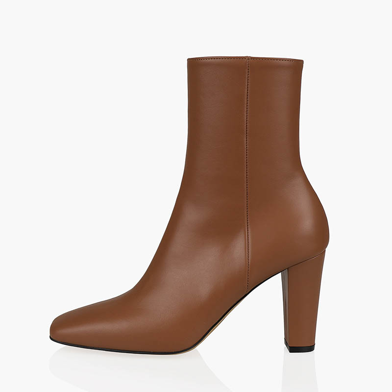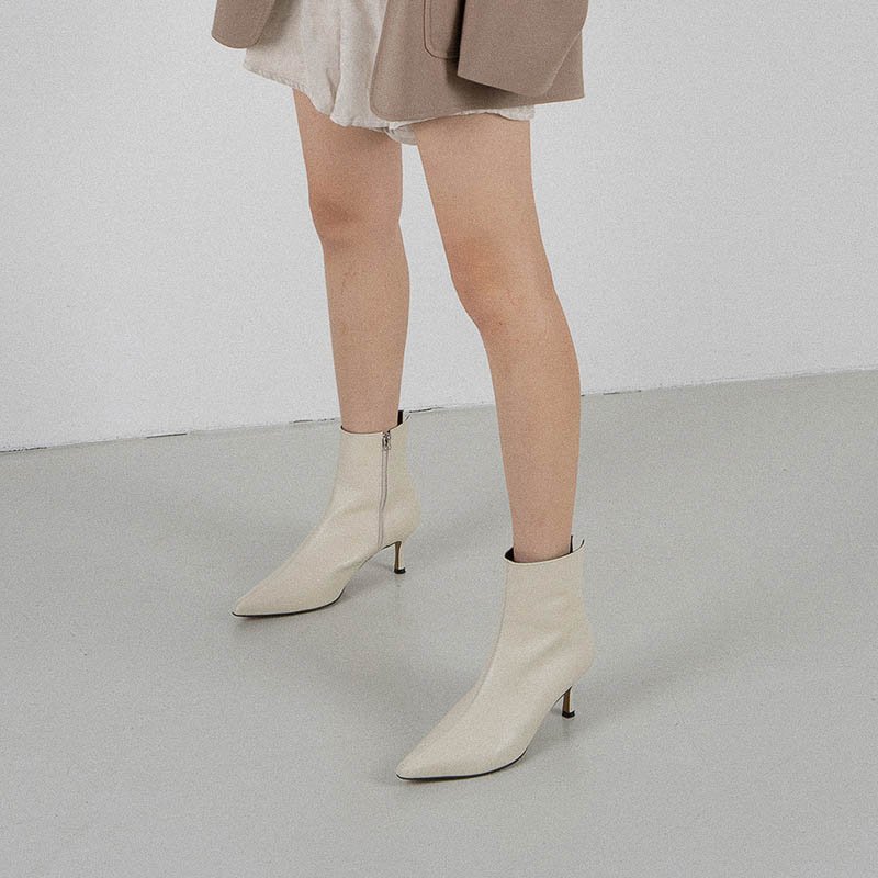 45. 슬림 스퀘어 앵클부츠 (스킨베이지) 240mm / 굽 8cm