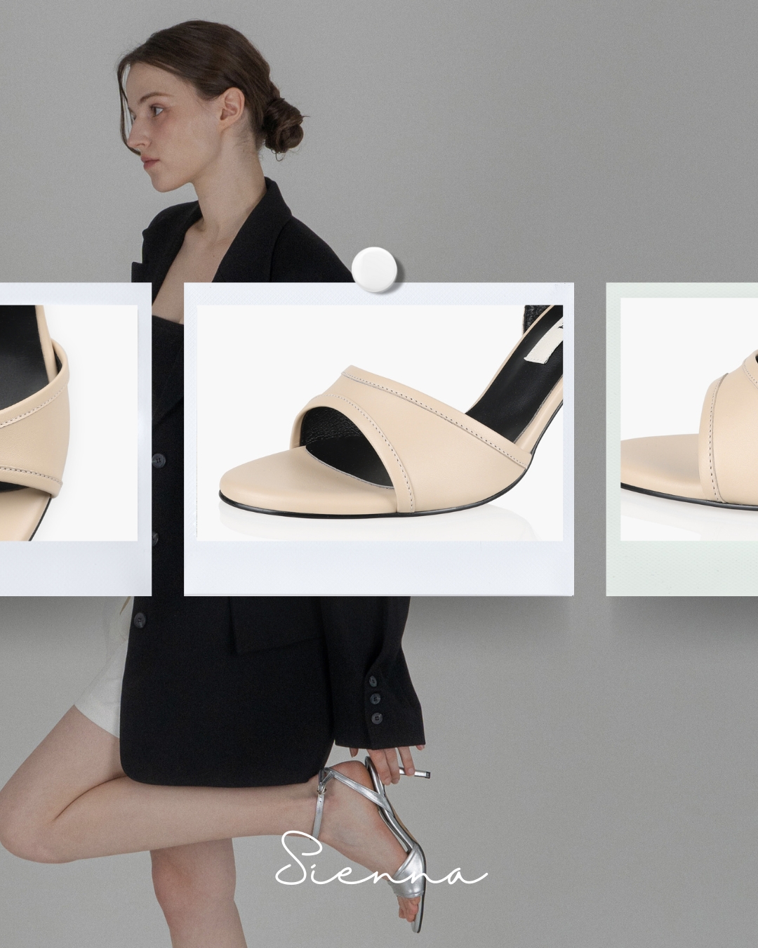시에나 샌들은 라운드 형태로 발볼을 편안하게 감싸주면서도 슬림하게 연출해 주는 샌들입니다. 미니멀한 디자인에 볼륨감이 더해진 발등의 라이닝 디테일은 포인트가 되어, 발을 더욱 풍성하게 만들어주죠. 유려한 곡선의 발등과 상반되는 일자 굽 라인은 스타일링을 더욱 슬림하고 세련되게 만들어줍니다. 모든 룩을 드레스 업 시켜주는 8cm 굽 높이에도 밸런스가 뛰어난 것은 빼놓을 수 없는 장점입니다.